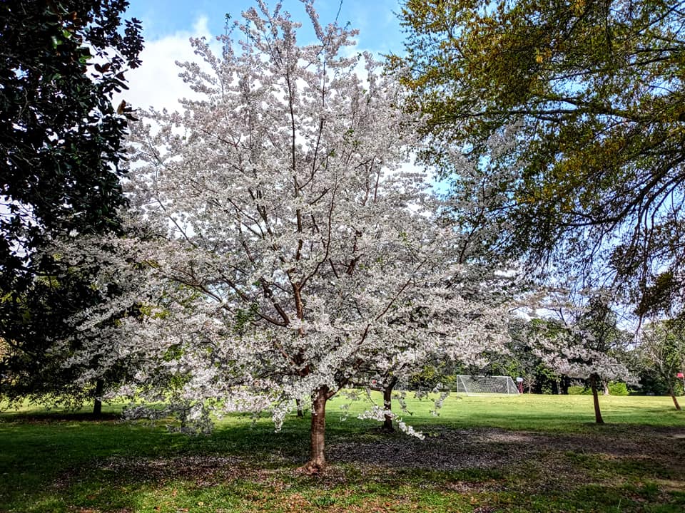 Note the bare cherry blossoms to the left due to the storms the day before.